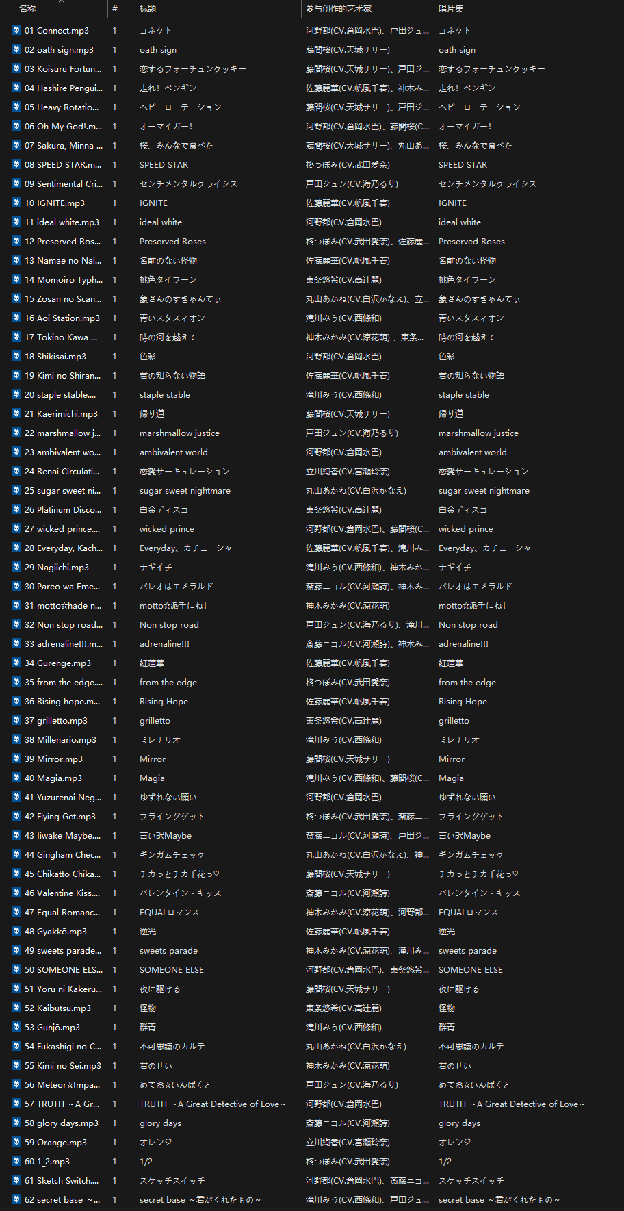 歌曲列表: